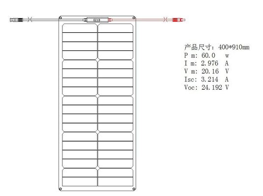 60W Semi Flexible 태양 전지 패널은 보트 데크, RV 지붕 및 캠퍼밴과 같은 곡선 표면에 적합하도록 부드럽게 구부릴 수 있습니다. 접착제로 접착되거나 매우 쉬운 방법으로 묶음으로 고정 할 수 있습니다.
